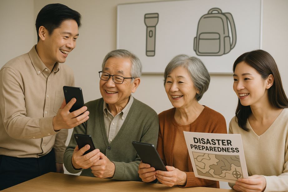 シニアが災害情報アプリやSNSを活用できるよう、操作講習やサポートを提供する企業の役割は大きい。
